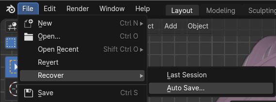 You can access any auto saves Blender did under File – Recover – Auto Save. I think they get deleted from time to time, so don’t leave it too long. The same goes for “last session”, it’s an other option to recover a file if Blender has just crashed out you.