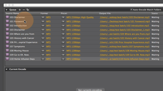 Simply select all affected clips in the queue (using SHIFT again, or that rectangle trick), then pick a different present from the list. You can pick your own presets here too of course – you can create them in Premiere, when you’re exporting a single sequence.