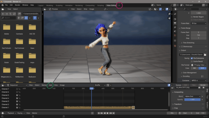 Blender isn’t exactly well known for its video editing capabilities, but rumour has it there’s a very capable editing tool included with Blender since forever. While I might not be brave enough to use it for YouTube just yet, I was in need of a quick video I needed to assemble from a rendered PNG sequence. All I had available on this system was Blender, and it worked a treat. Here’s how to do it.