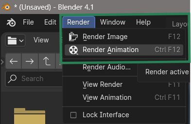 When all all of that looks good, head over to the top left and choose Render – Render Animation (or hit CTRL + F12).