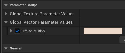 To make the decal texture blend in with your landscape, we may need to override the Diffuse Multiply value in the Material Instance (under Global Vector Parameters). Note that this will change all instances of the decal using the same material. If you need to make adjustments individually, consider duplicating the instance first.
