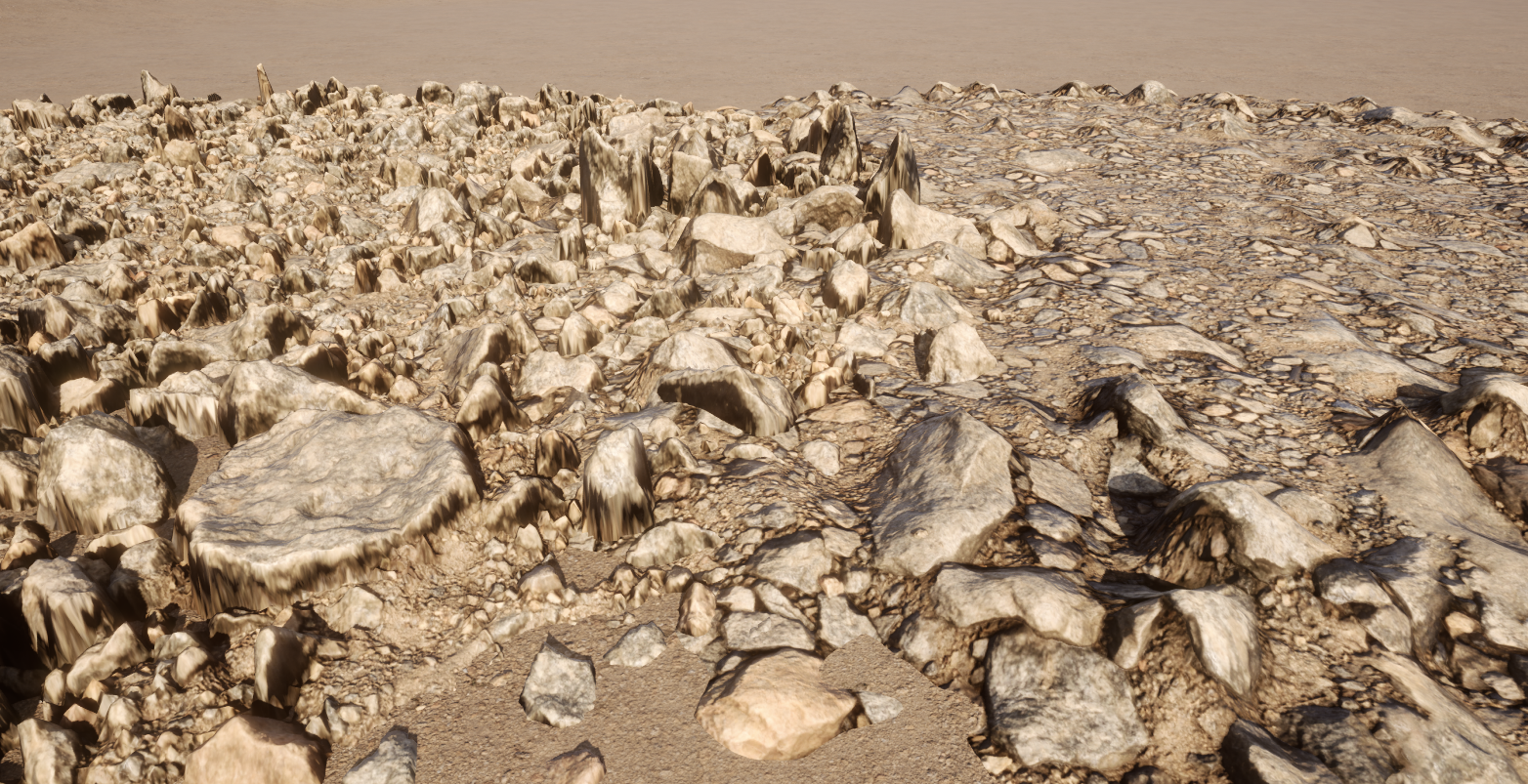 That’s all I have for now. If you want to blend in the edges of your decals, consider using these with Mesh Blend, another incredible product that’s completely changed the way I work in Unreal Engine. It blends the intersections of meshes, in our case between the landscape and the decal geometry. I have a getting started guide here. Here’s what a PCG Decal looks like when combined with Mesh Blend. It rocks!