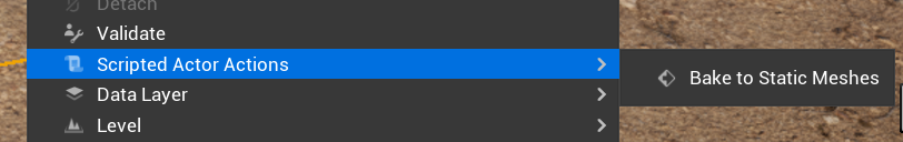 To bake, simply right-click on your decal in the viewport, then choose Scripted Actor Actions – Bake to Static Meshes (this works with multiple objects.