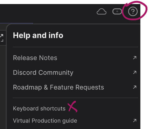 Note that these can be changed to something you may enjoy more (click on the Question Mark icon, then Keyboard Shortcuts – Scene).