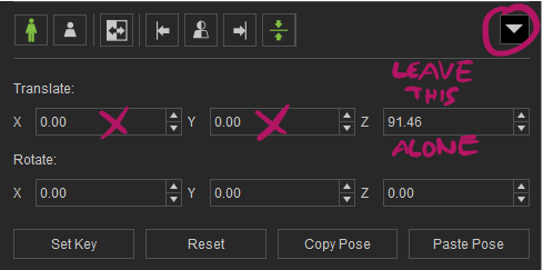 For numeric control, we can use the arrow on the right to expose those values (set the X and Y values to zero, but leave Z alone as it’s the hip height).