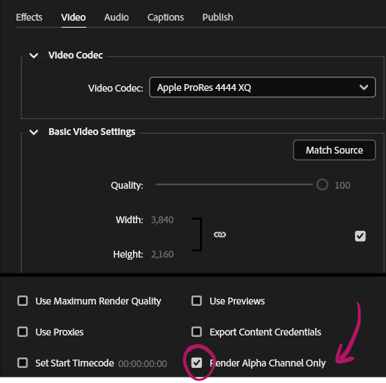 If you’re wondering how to extract an alpha channel from existing footage, Media Encoder has an option for that (Render Alpha Channel only).