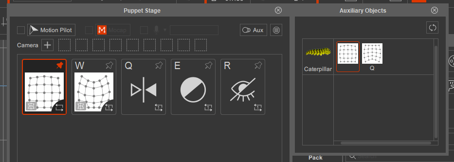 For my simple scene I have a wiggly jelly desert, and a caterpillar. Each object is a prop with their separate idle motion. One hotkey is setup so they both trigger a different animation.